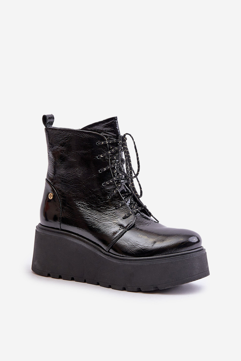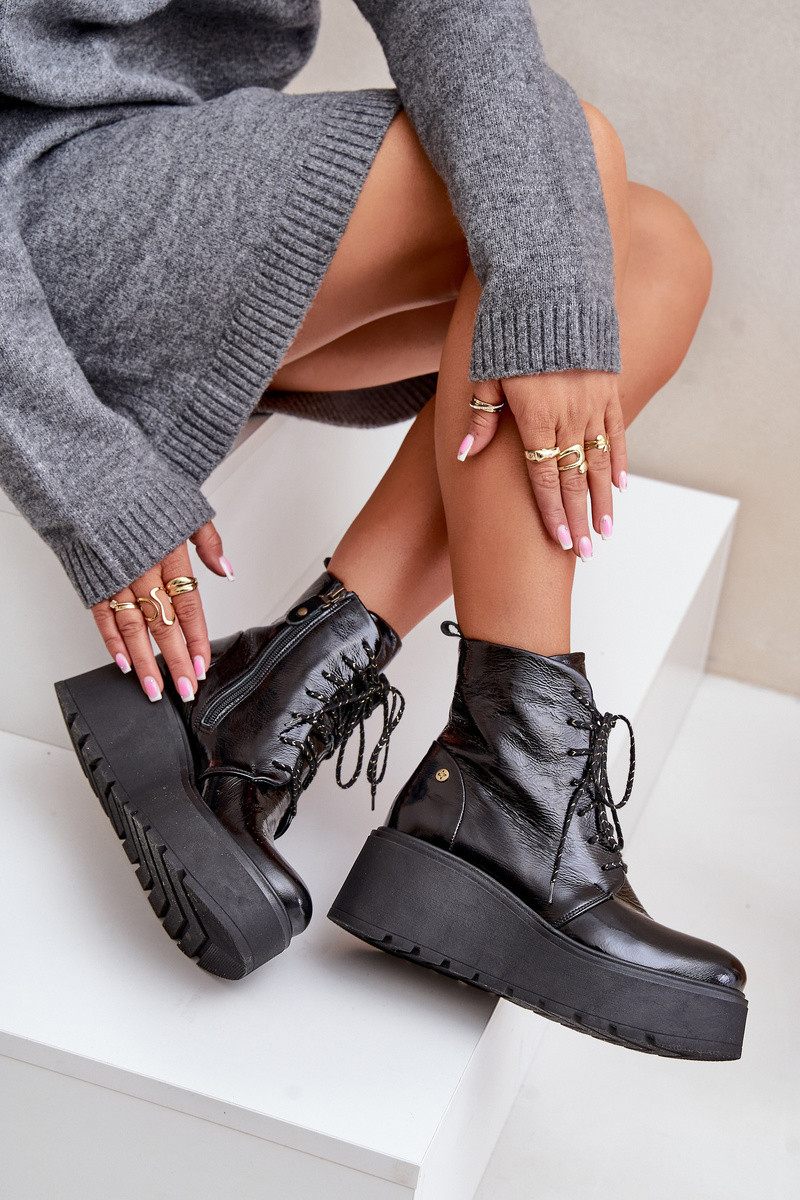 Bottines en cuir effet verni à plateforme pour femmes Tai turiciejka 06762-01 noires