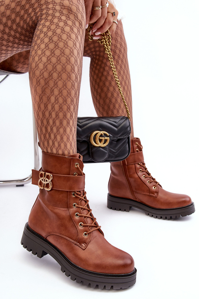 Bottines de travail Féminin avec fermetures éclair avec des ornements marron Ciossava