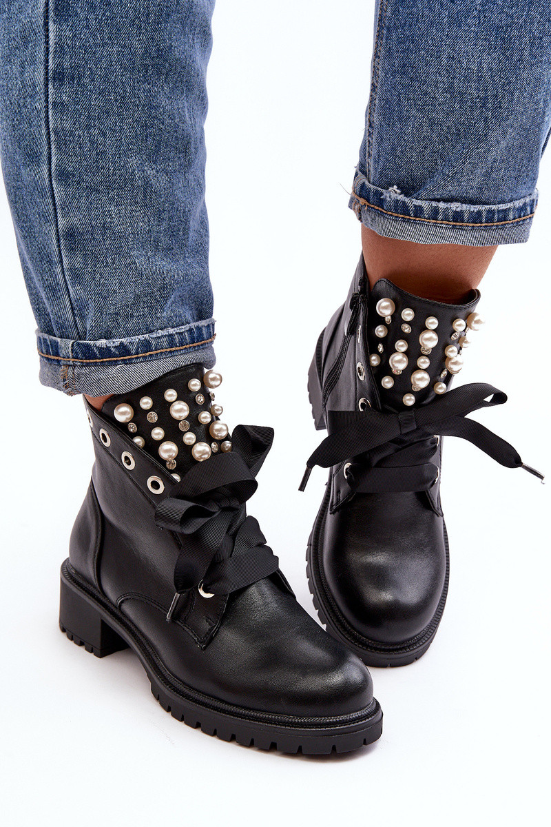 Décoré Bottes pour femmes avec fermetures éclair couleur noire Elonte