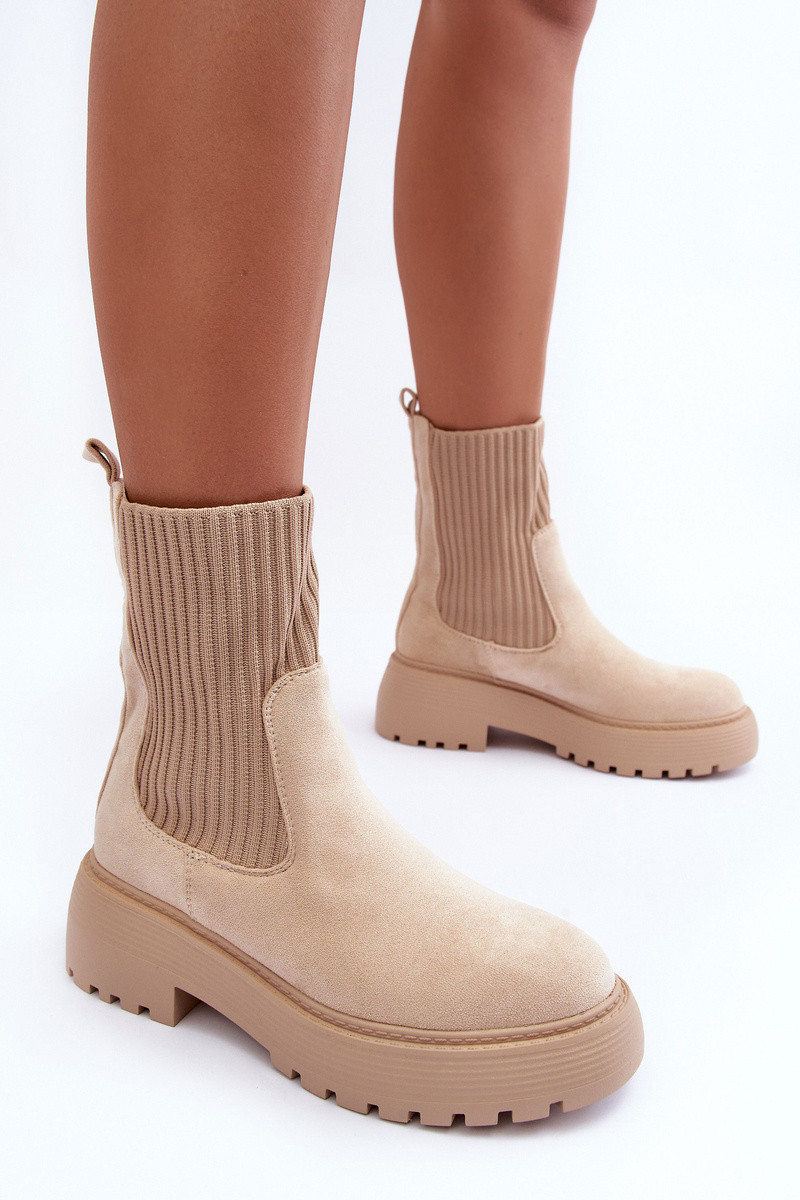 Chaussures en daim avec une semelle intérieure de type chaussette avec une plateforme Et des talons plats beige ReÀam
