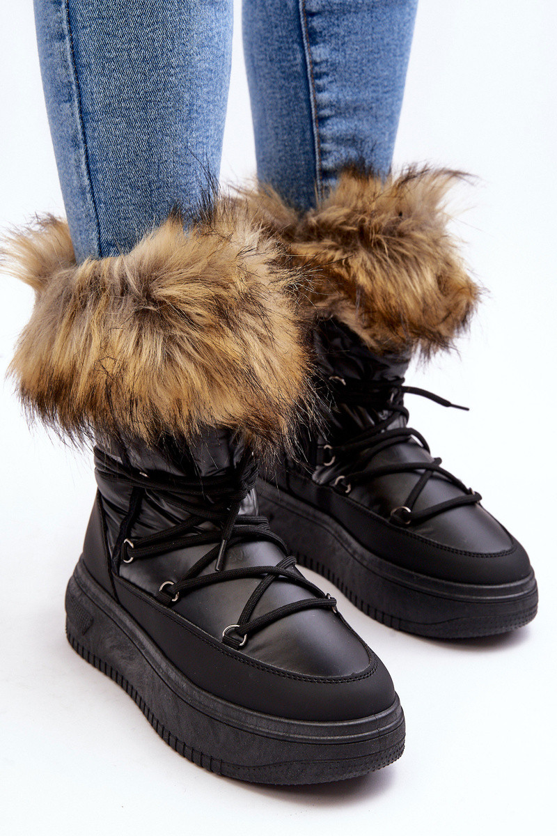 Bottes de neige pour femmes avec fourrure et plateforme couleur noire Įjungtabilla