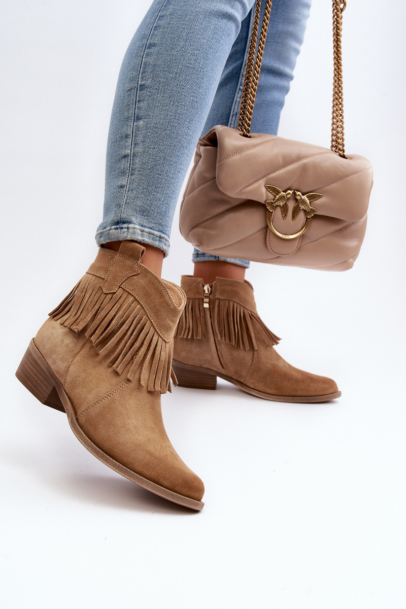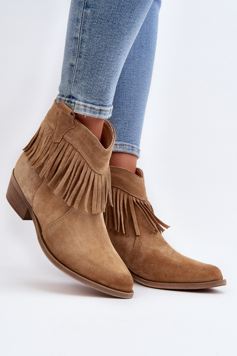 Zazoo 3430 Chaussures en daim Féminin avec des franges beige