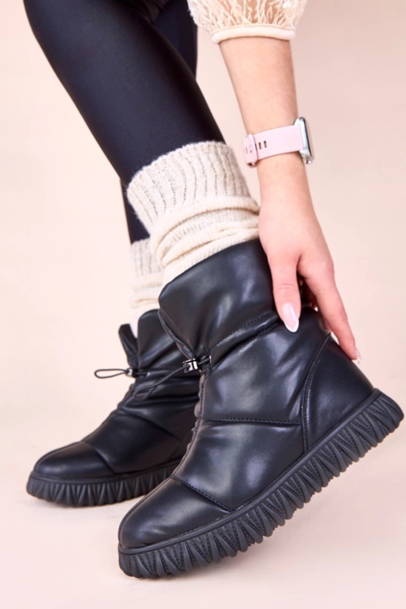 Bottes de neige noires en cuir naturel avec élastique Raschmi
