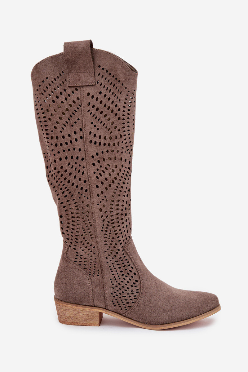 Bottes longues couleur sable pour femmes avec éléments ajourés jusqu'au genou Fioris
