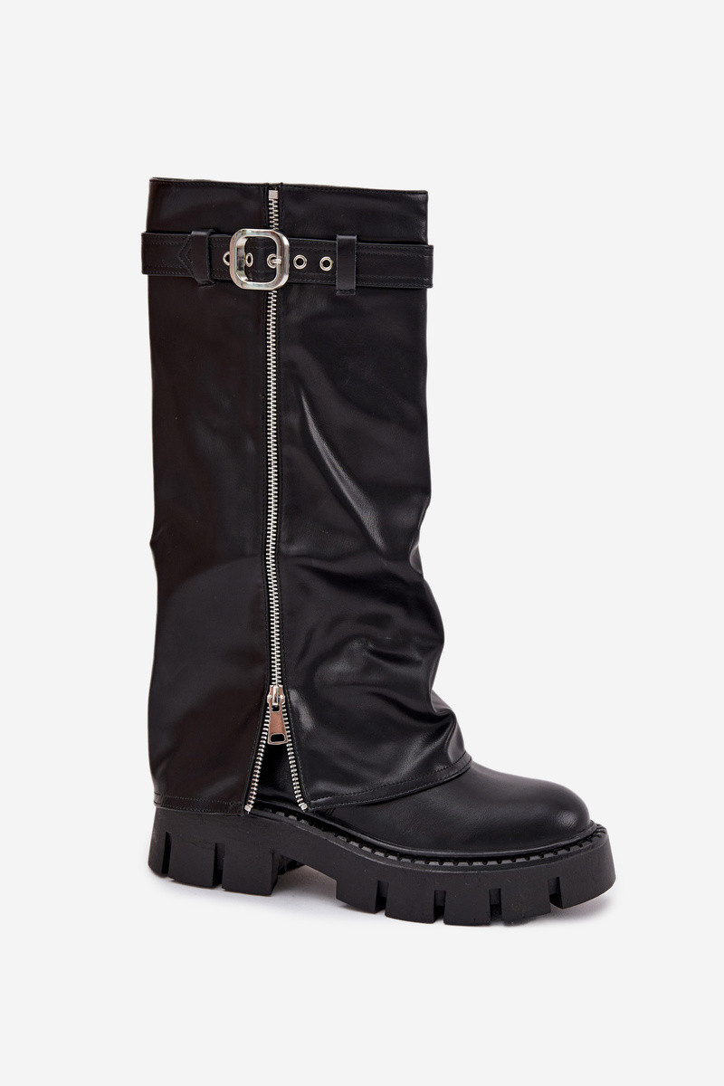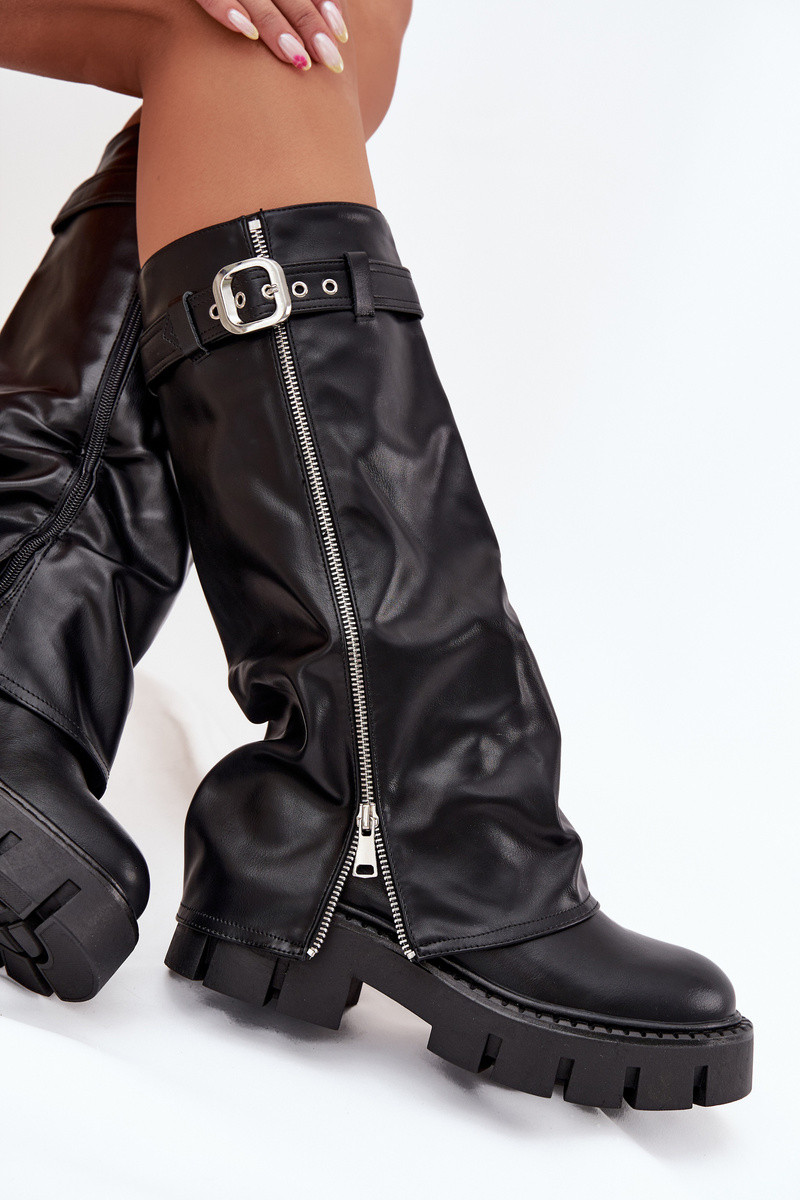 Bottes longues noires isolées avec choleika et boucles, et fermeture éclair argentée Armena