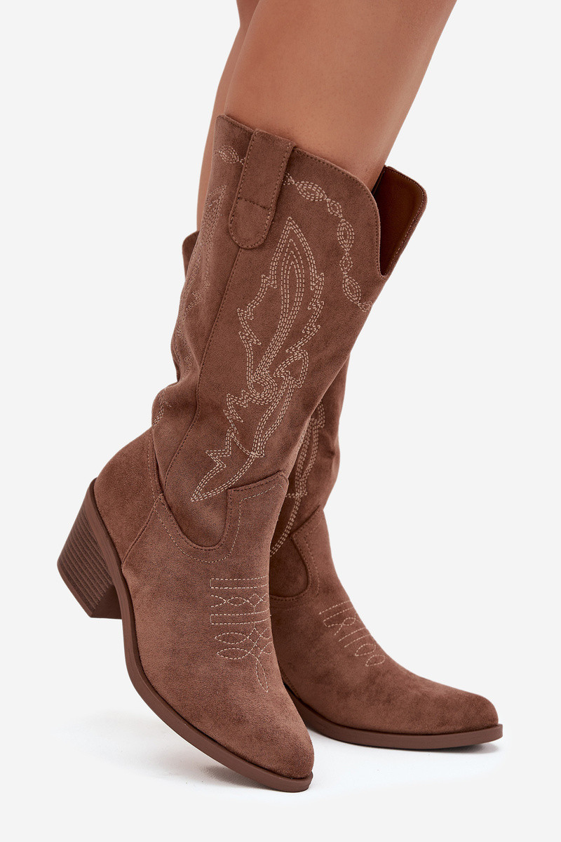 bottes longues en style cowboy pour femmes avec talons doublées Vinceza 16508 couleur sable