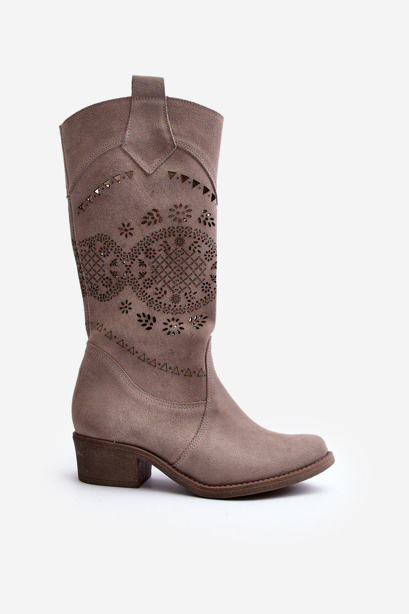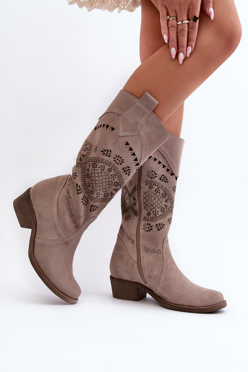 Bottes montantes en daim Zazoo 4043 à petit talon avec éléments ajourés couleur cappuccino