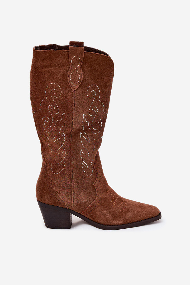 Bottes longues en daim marron style cow-boy avec talons « Karira »