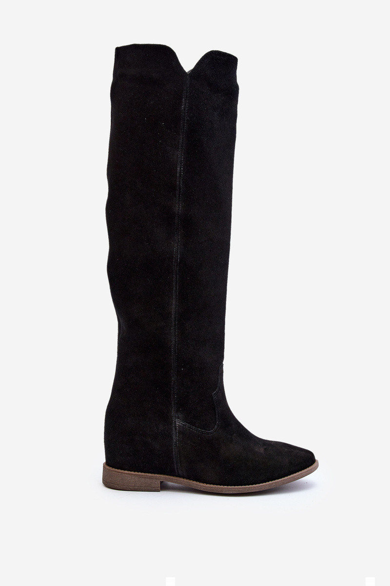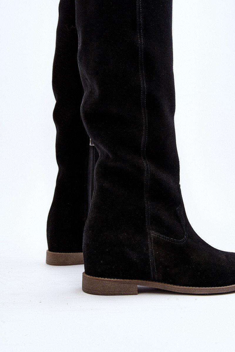Bottes en daim noires jusqu'aux genoux avec larges talons « Zazoo 3407 »