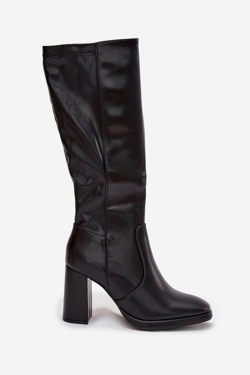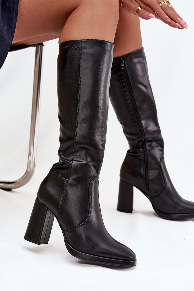 Bottes longues en cuir écologique pour femmes couleur noire avec talons Lyvella