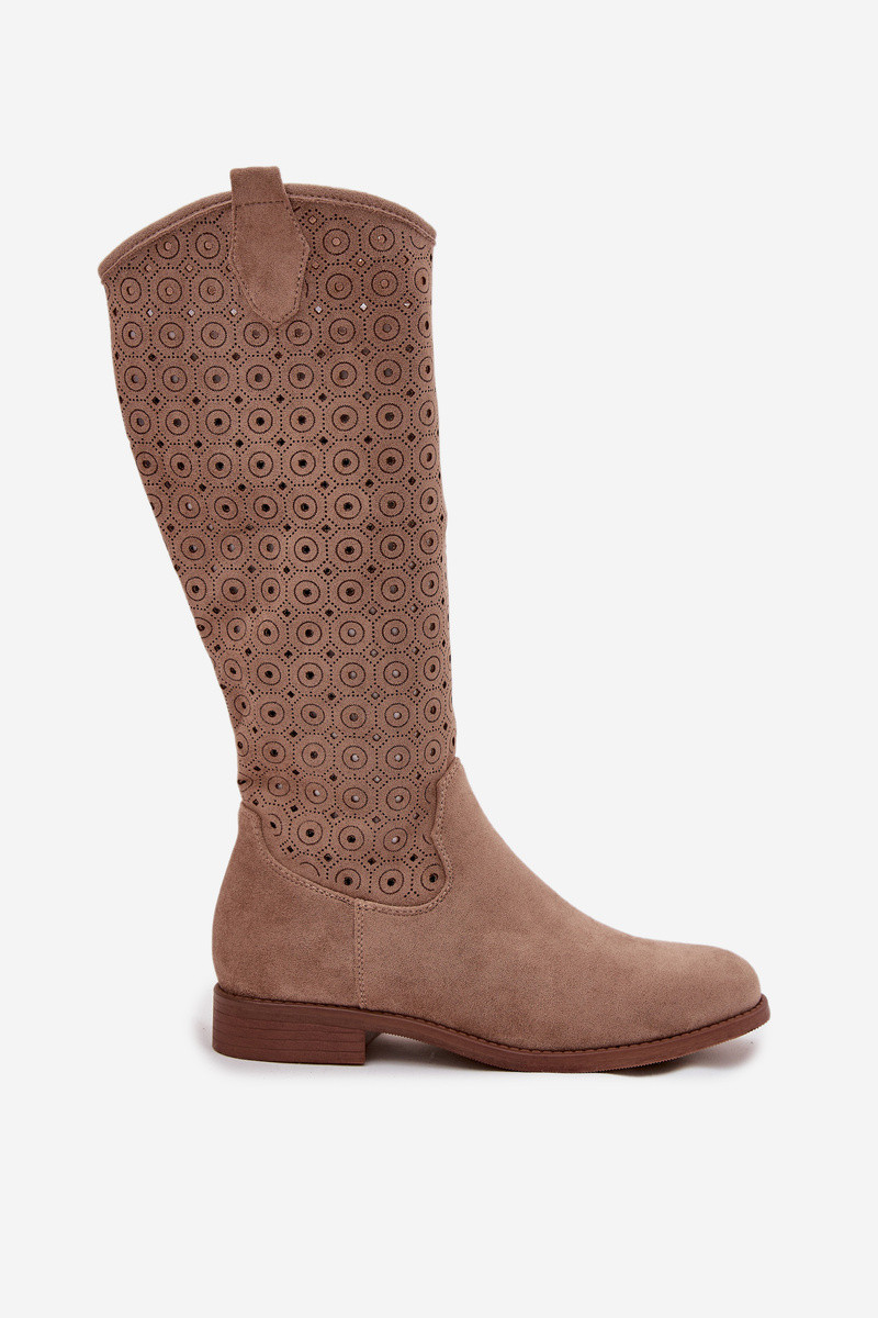 bottes pour femmes avec des talons larges avec des éléments ajourés S.Barski HY52-531 beige