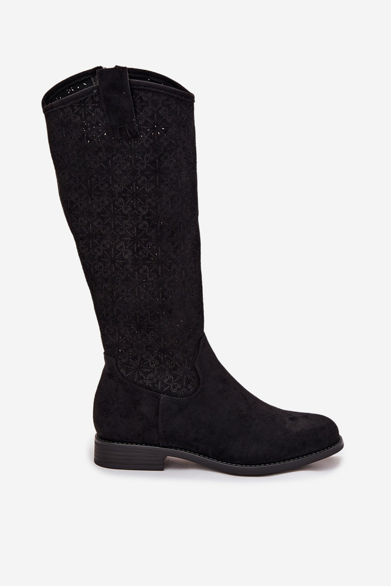 bottes pour femmes avec des éléments ajourés avec des talons larges S.Barski HY52-534 couleur noire