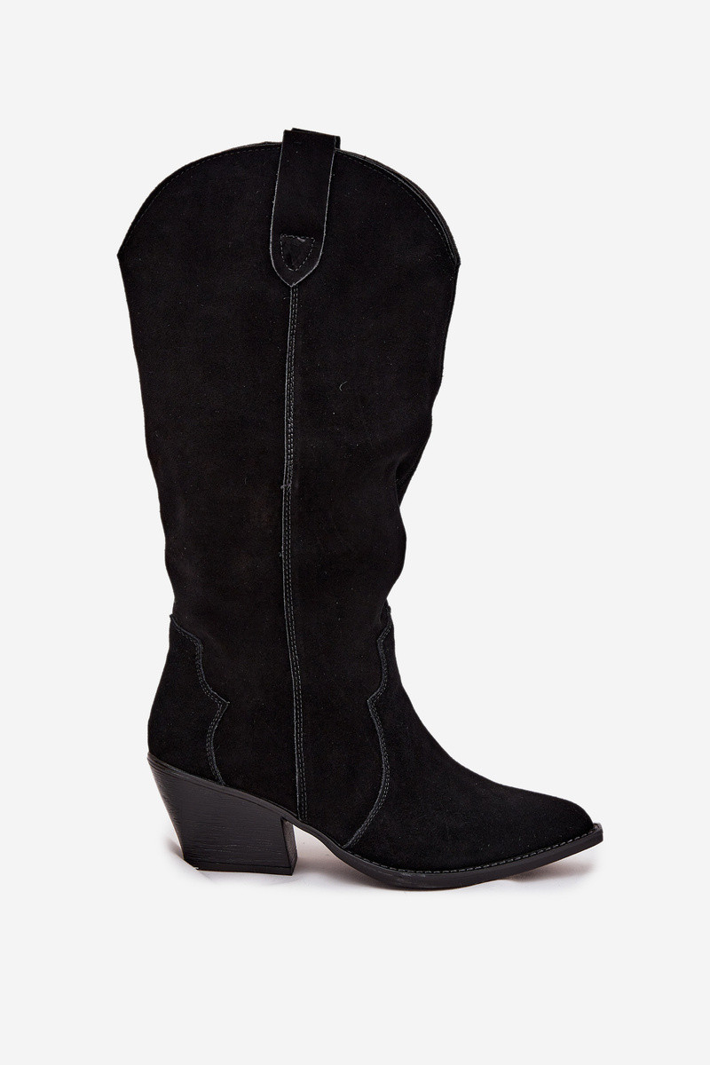 Bottes de cowboy pour femmes en daim synthétique, couleur noire, Urselle