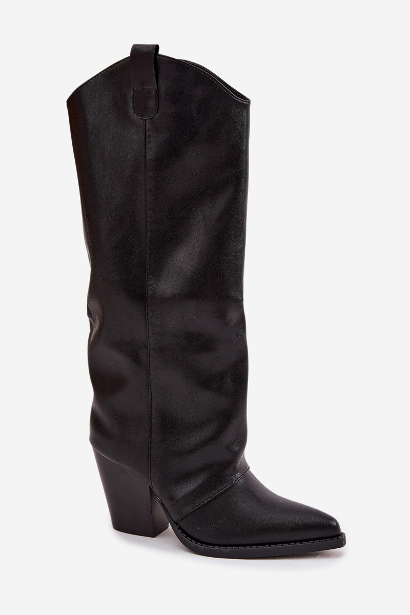 réchauffer bottes style coÀ-boy avec des talons en cuir écologique couleur noire Il fautvine