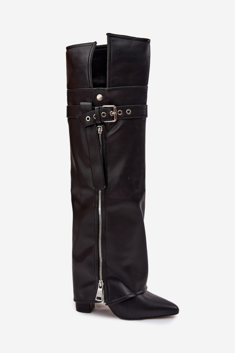 réchauffer bottes pour femmes au-dessus du genou avec des talons avec des sangles avec boucles I couleur argentm Zamkiem couleur