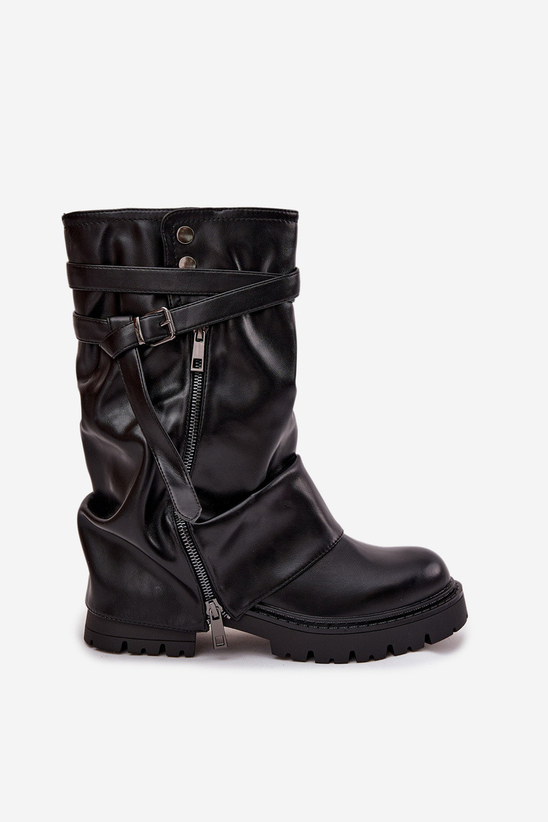 Bottes longues pour femmes avec cheville embossée, milieu de mollet, avec sangles, couleur noire Darisa