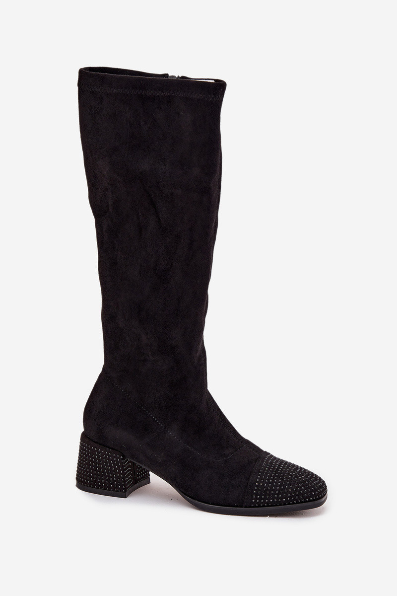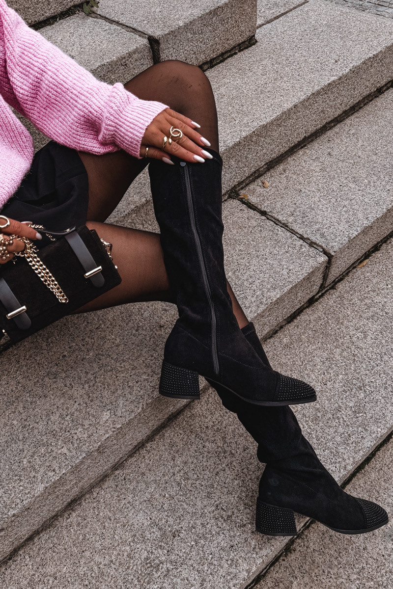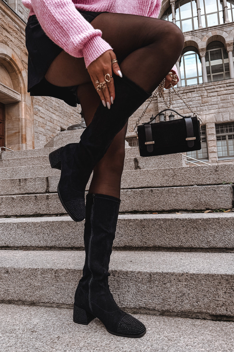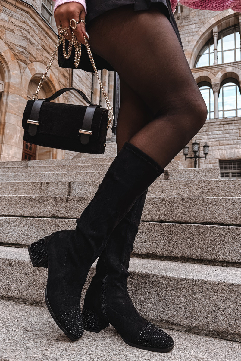 Bottes longues pour femmes avec décoration Klocke en daim synthétique, couleur noire Ivanna