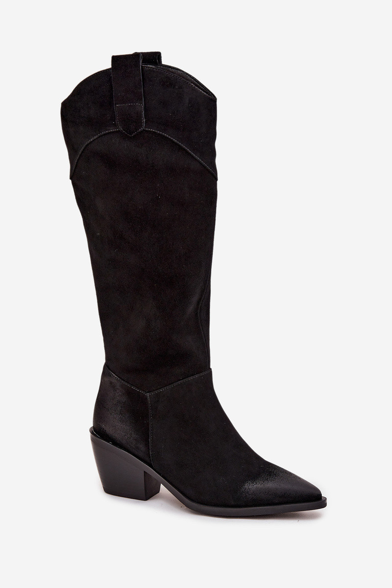 Bottes longues de style cowboy pour femmes avec talons en daim naturel Artiker 57C0232, couleur noire