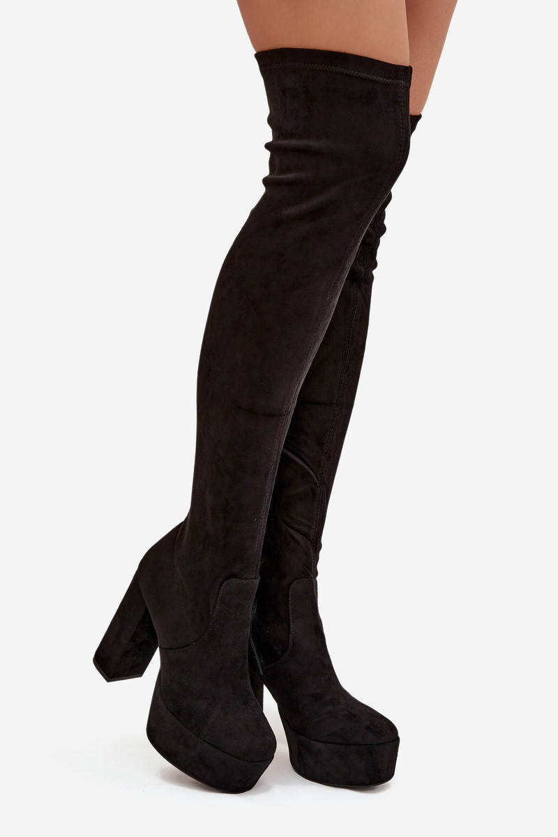 bottes avec des talons et plateforme au-dessus du genou en daim écologiqueoÀe couleur noire Amareen