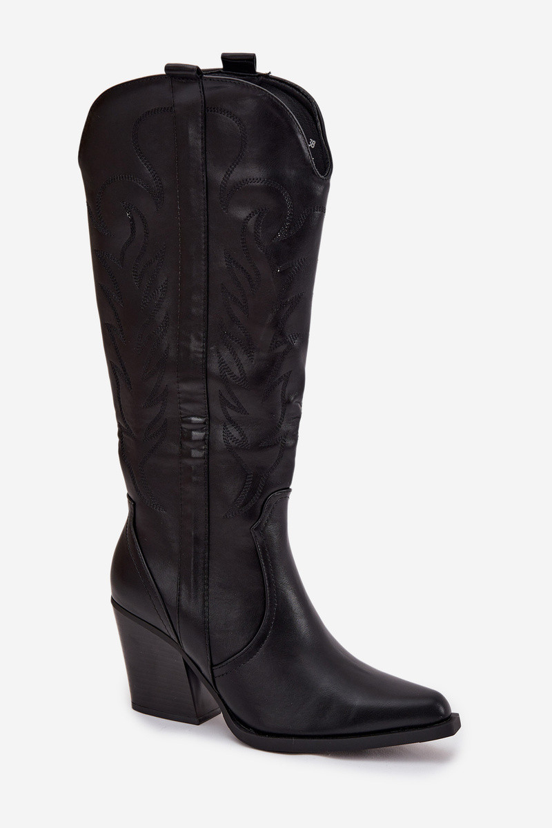 bottes style coÀ-boy avec des talons Eko Peau réchauffer couleur noire Zareen