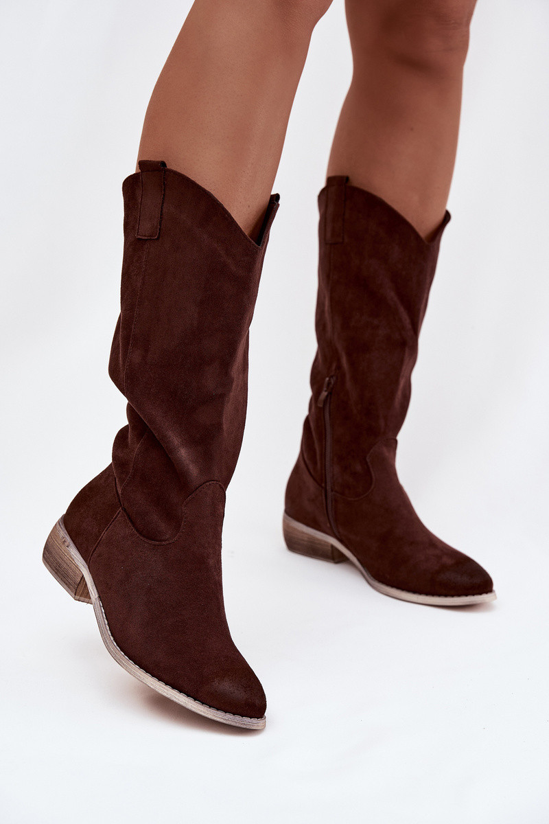 Bottes cowboy chocolat à talon bas en simili daim Cherrie