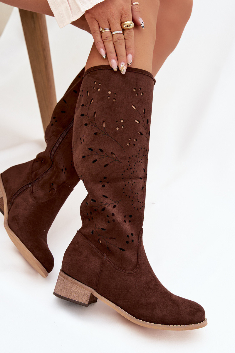 Bottes montantes pour femmes couleur chocolat avec des éléments ajourés Helinna