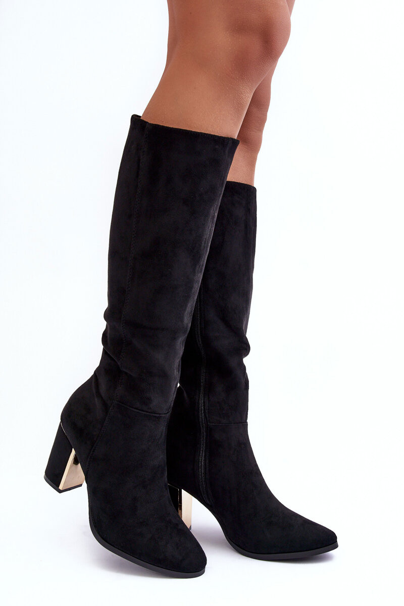 bottes Contre la route avec des talons en daim couleur noire Kilrenita