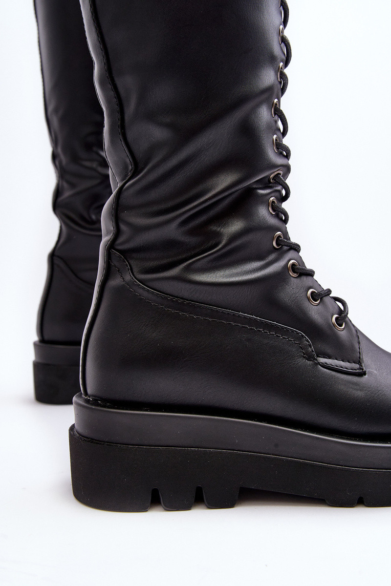 Bottes en cuir noires pour femmes avec doublure chaude jusqu'aux genoux "Lliclies"