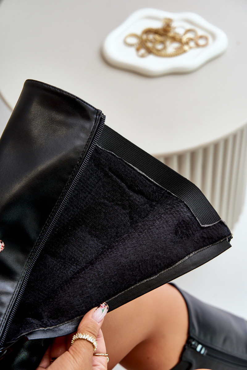 Bottes longues isolées pour femmes avec talons larges et boucles dorées noires Arsisna