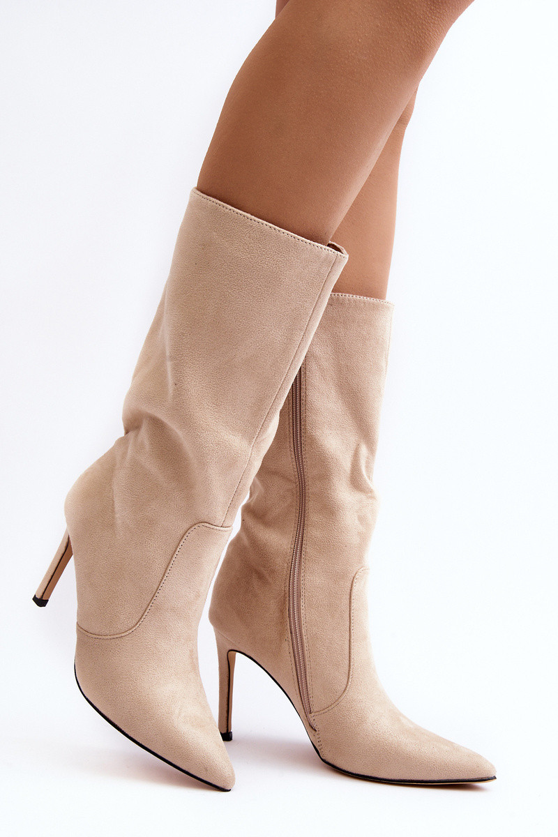 Féminin bottes Mi-mollet avec des talons fins beige Odetteia