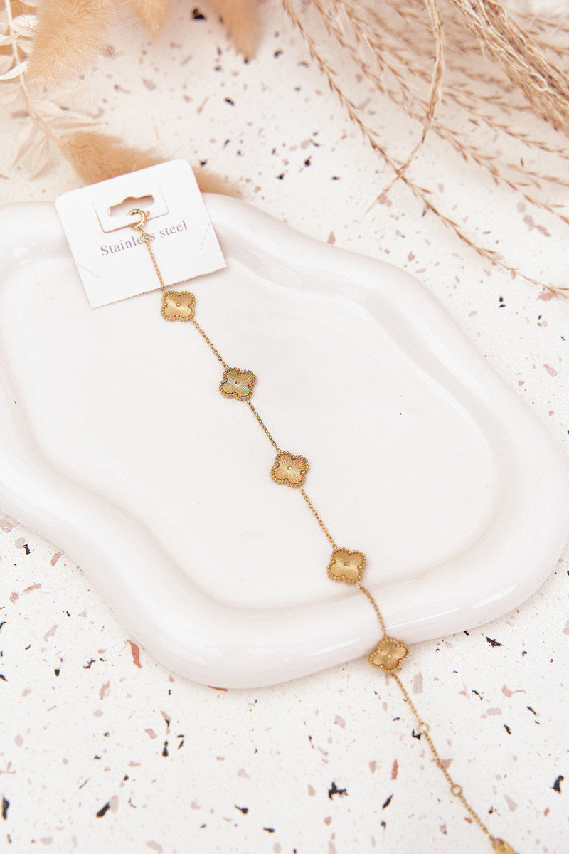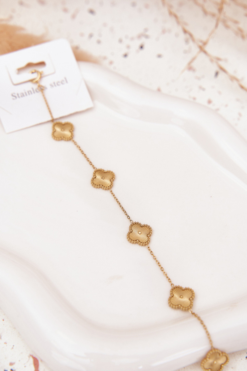 Un bracelet en acier inoxydableavec des motifs florauxuszkami couleur dorée