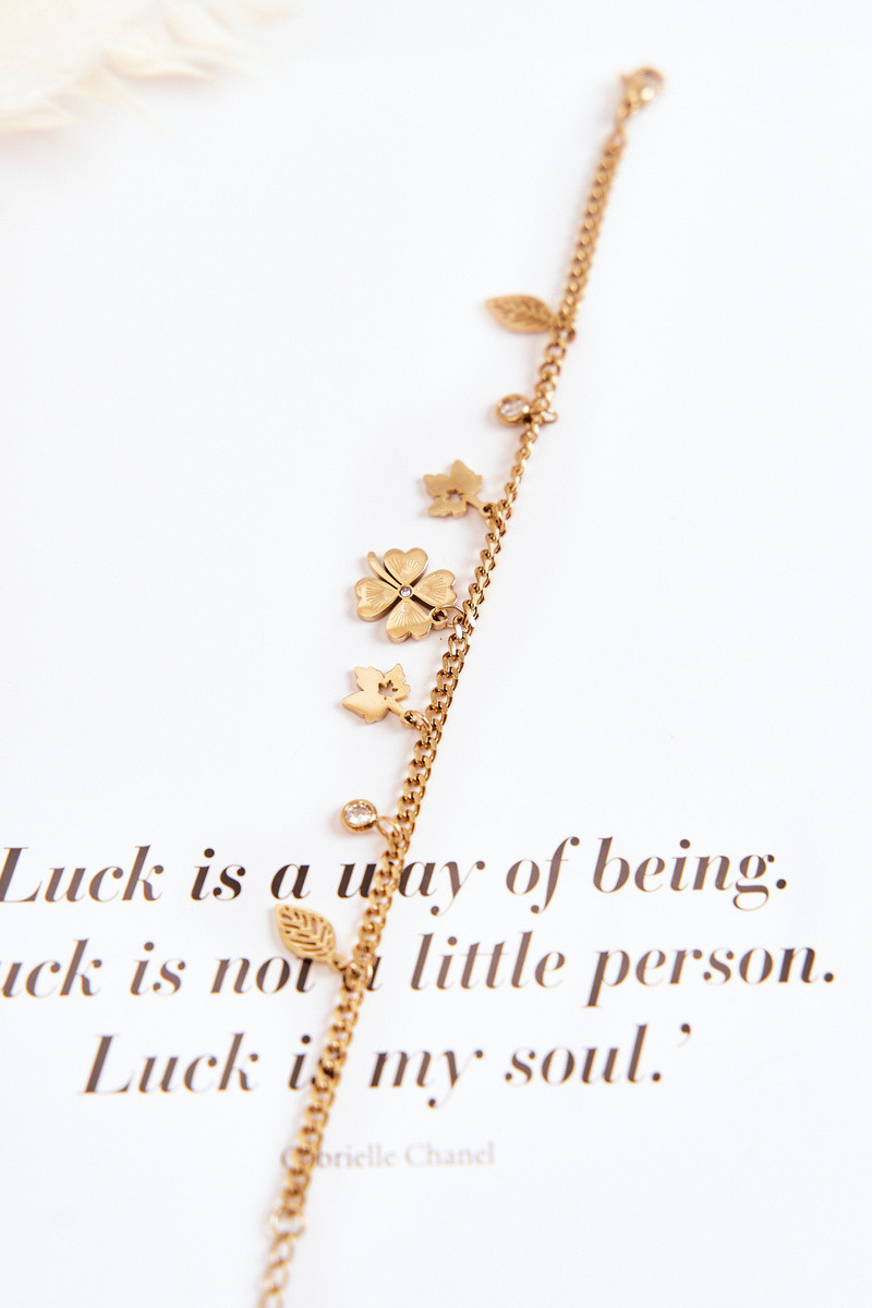 À la mode Un bracelet Avec le trèfle Et les feuilles couleur dorée