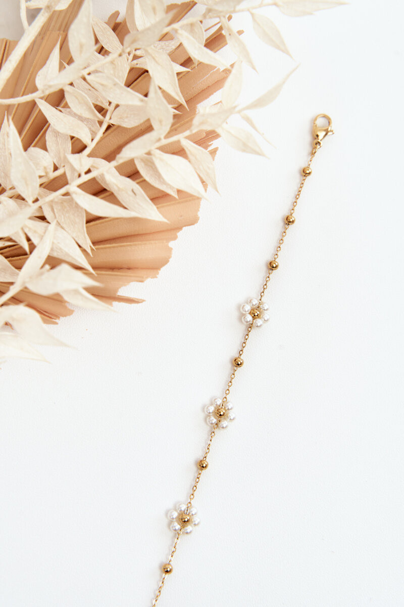 Bracelet généreux avec fleurs blanches couleur or