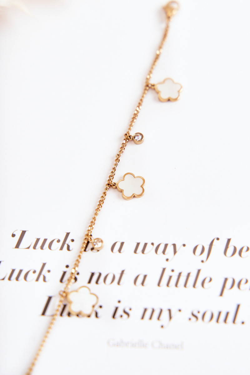 Un bracelet avec une chaîne avec des fleurs or-Blanc