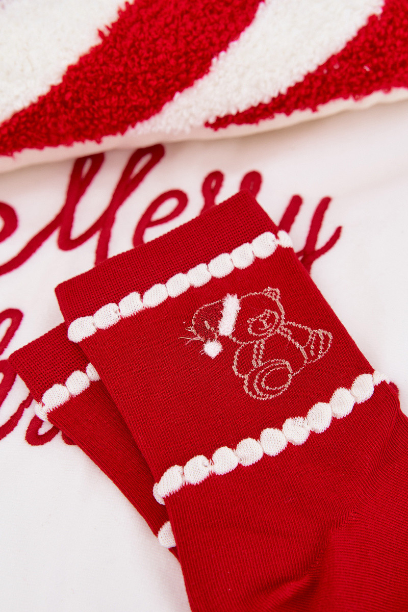 Chaussettes de Noël pour femmes rouges avec oursons et Père Noël