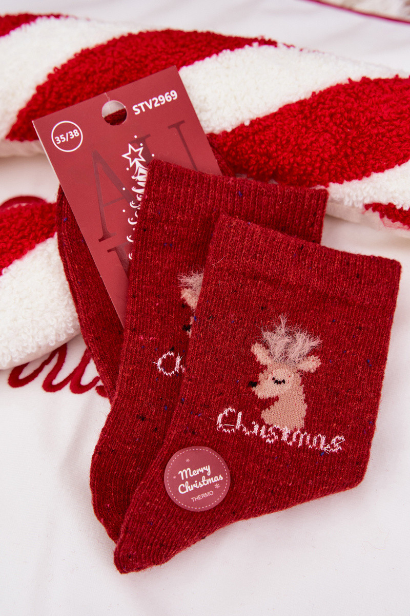 Chaussettes de Noël pour femmes avec des rennes, en laine, rouges
