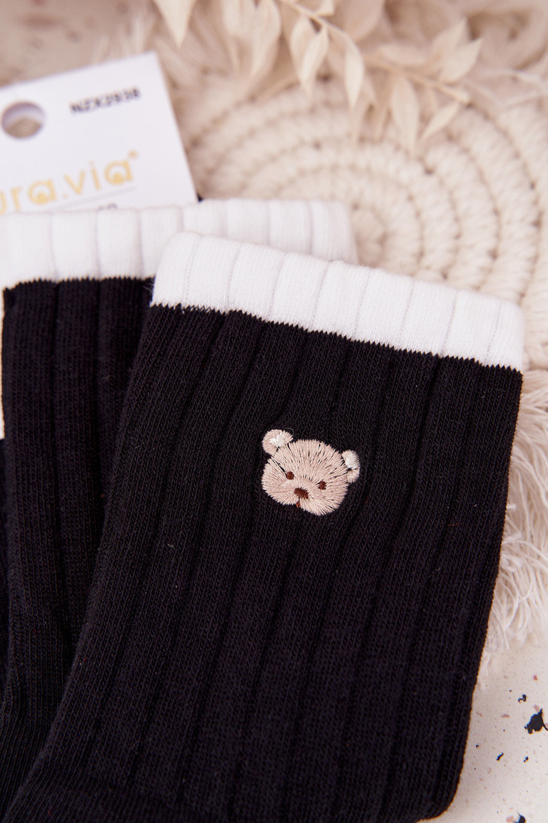 Chaussettes en coton pour femmes avec des ours en peluche de randonnée, noires