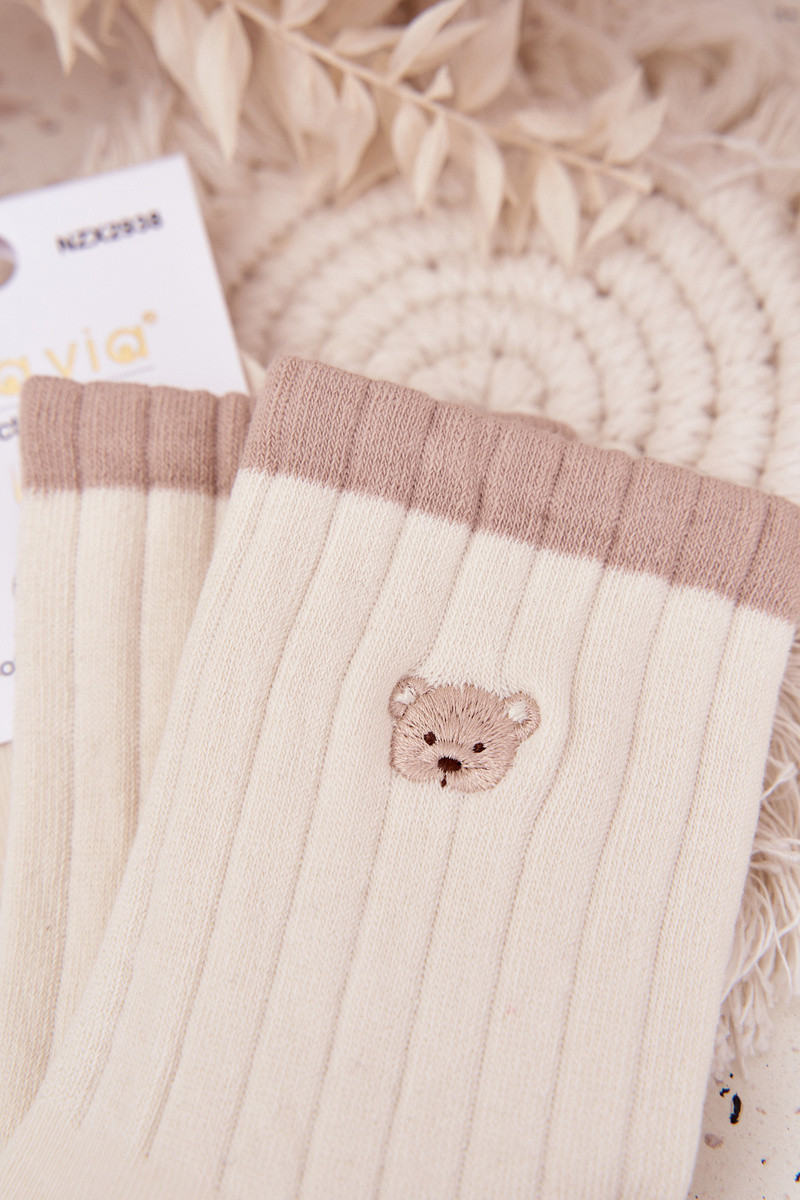 Chaussettes en coton pour femmes avec des ours en peluche de randonnée, couleur ivoire