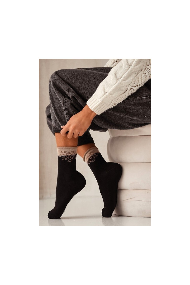 Chaussettes Féminin Noël Półfrotte UNIQUE Pas de pression GÀiazdka couleur noire