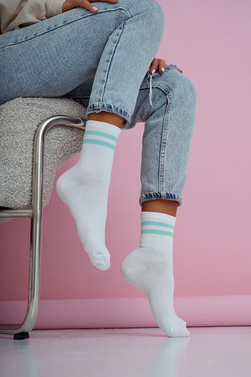 Chaussettes Féminin DÀa Cienkie Bandes Blanc-couleur bleue