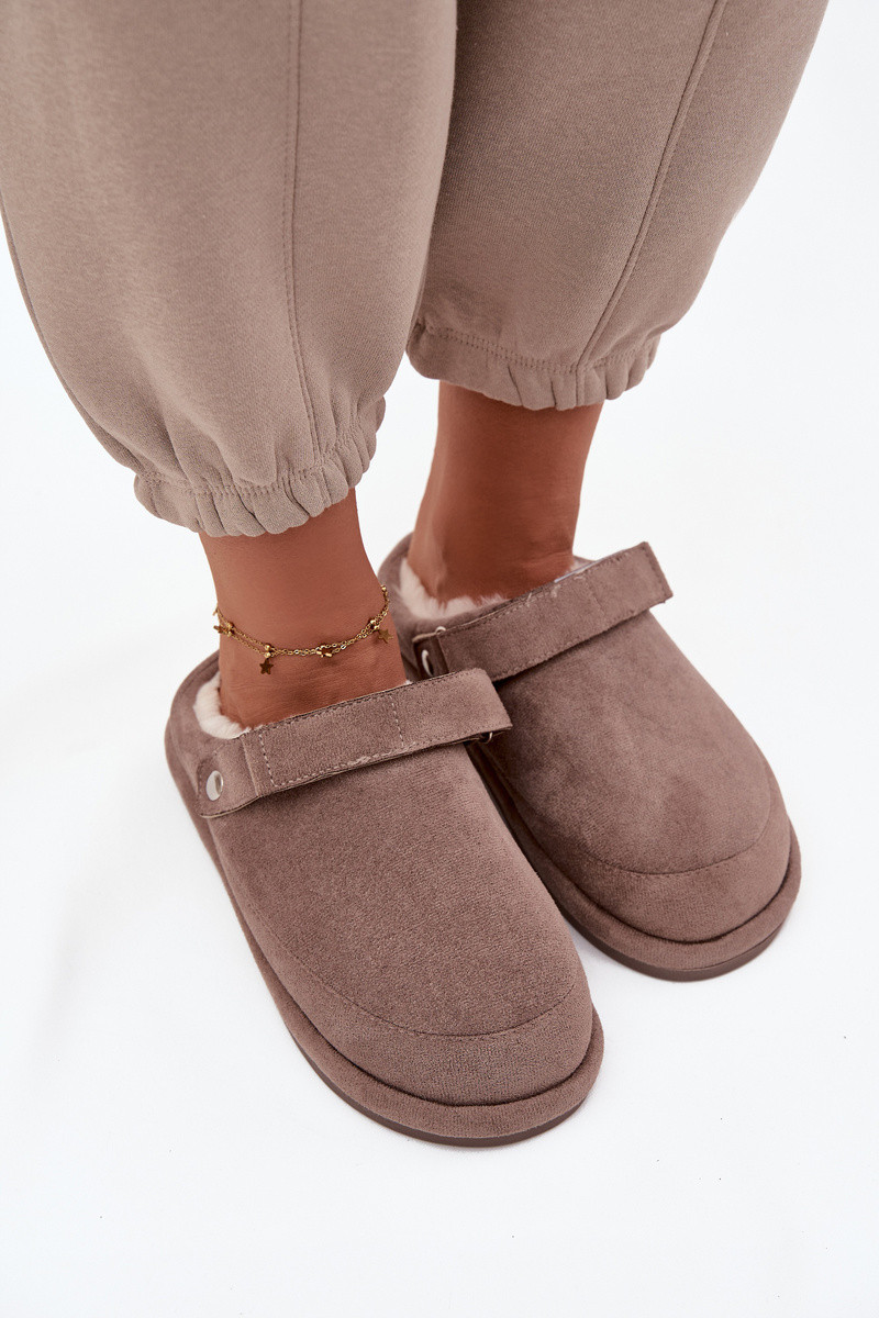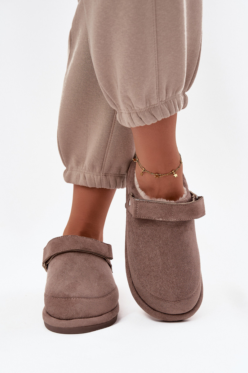 Chaussons beige pour femmes avec lanières, doublés de fourrure Rilena