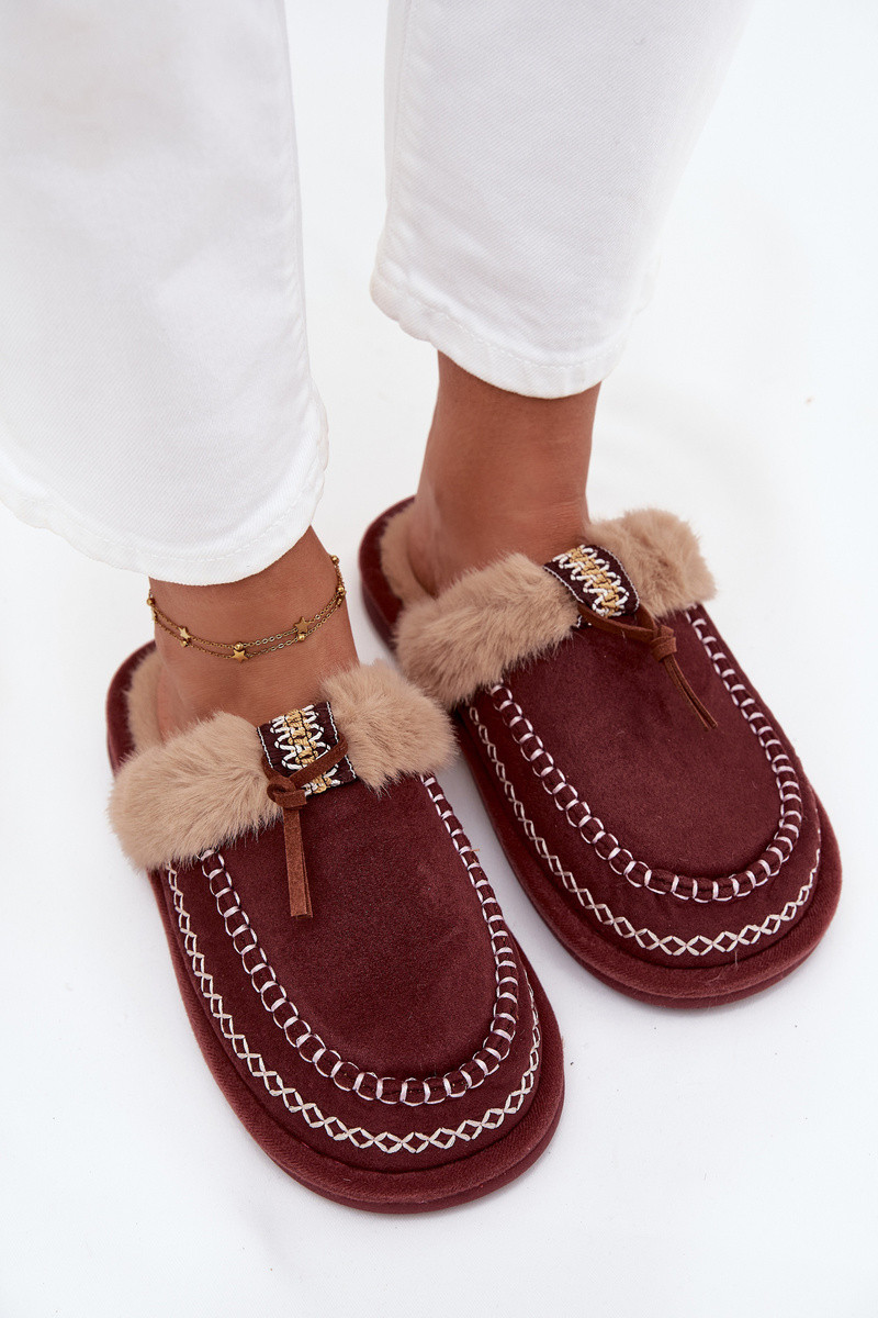 Chaussons pour femmes couleur bordeaux avec fourrure et broderie Perivelle
