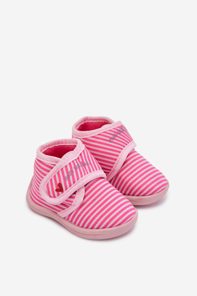 Chaussons Puéril avec attaches adhésives avec des bandes couleur rose Lavelle