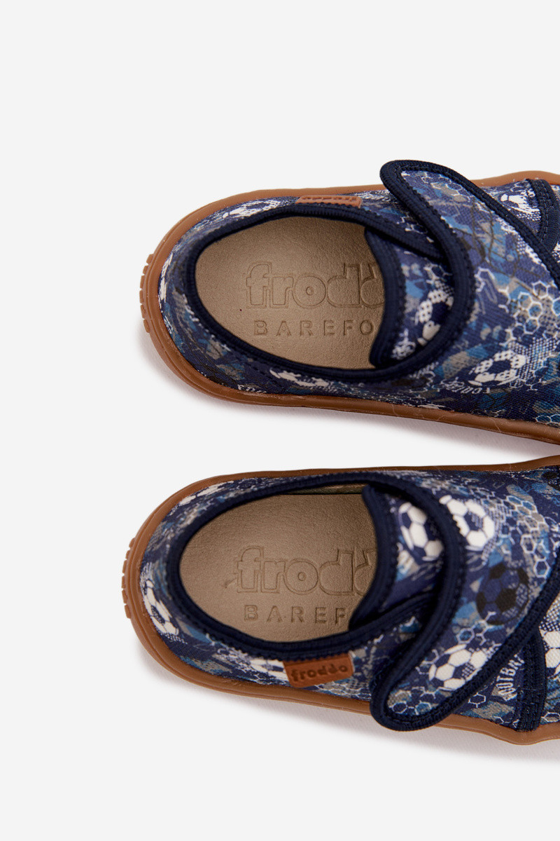 Pantoufles pour garçons avec fermetures Velcro Barefoot avec des ballons Froddo G1700438-6 couleur bleu foncé