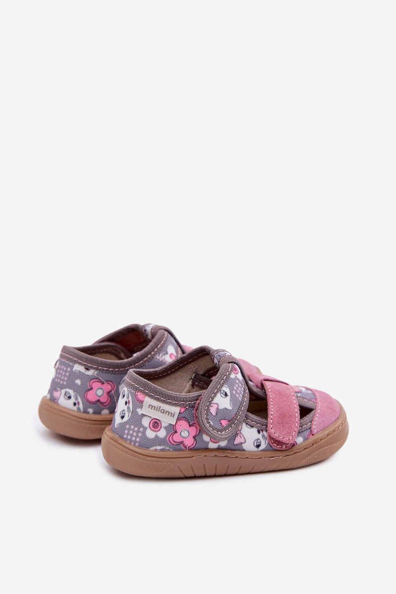 Chaussons pour enfants Milami avec motifs de chat et de fleurs couleur gris-rose Lumi