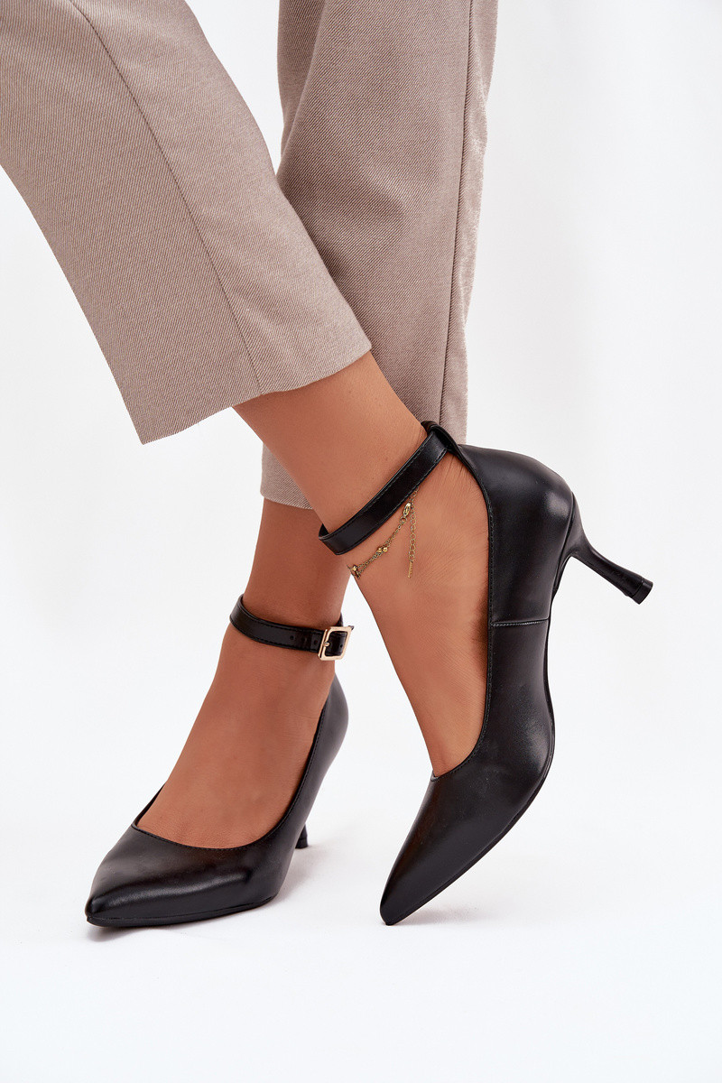 chaussures à talons hauts Chaussures avec des sangles couleur noire Perrine