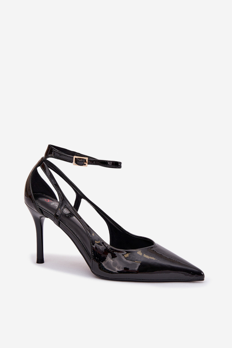 avec effet vernis chaussures à talons hauts en cuir écologique couleur noire Fionnel