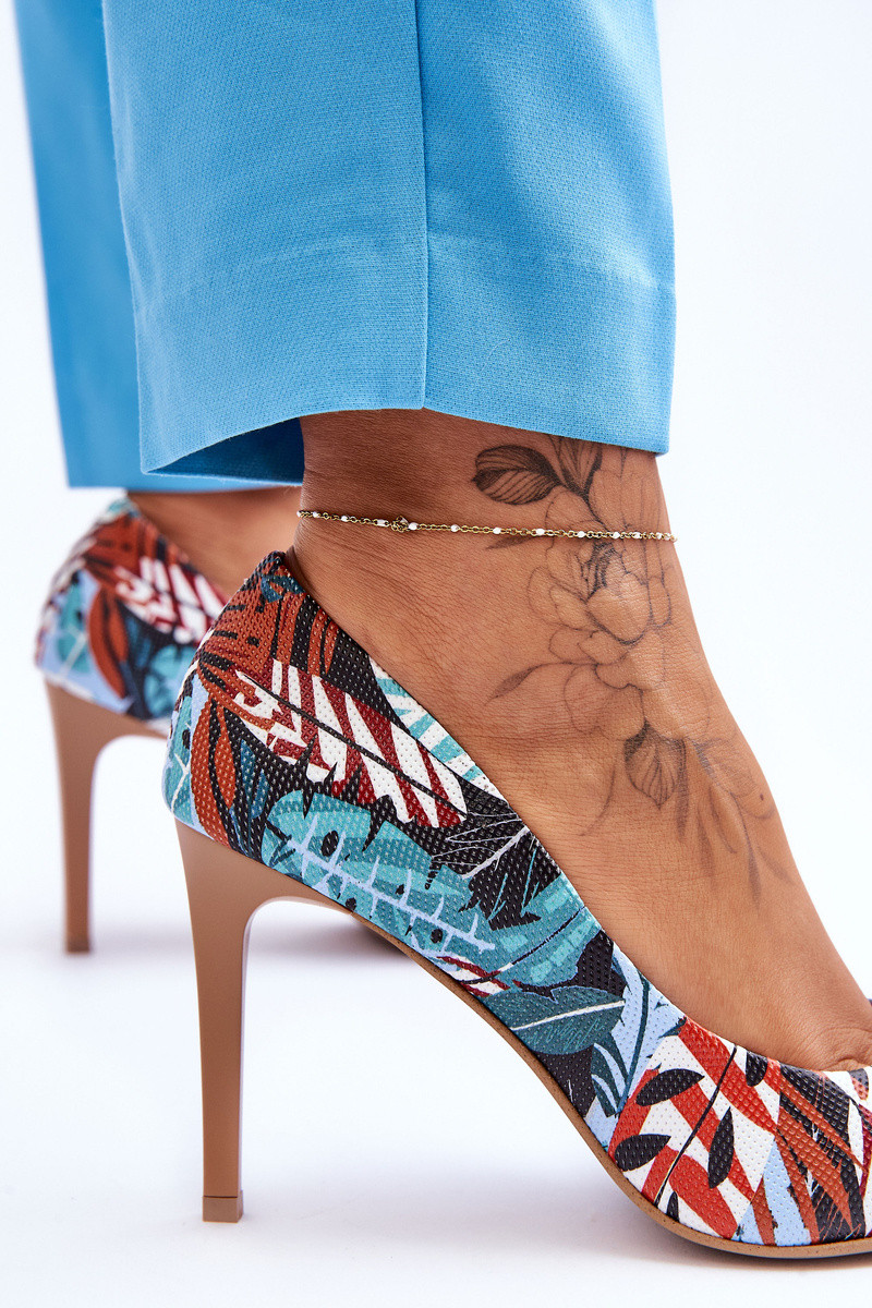 À la mode Peau chaussures à talons hauts LeÀski Shoes 2659 vert-couleur bleue