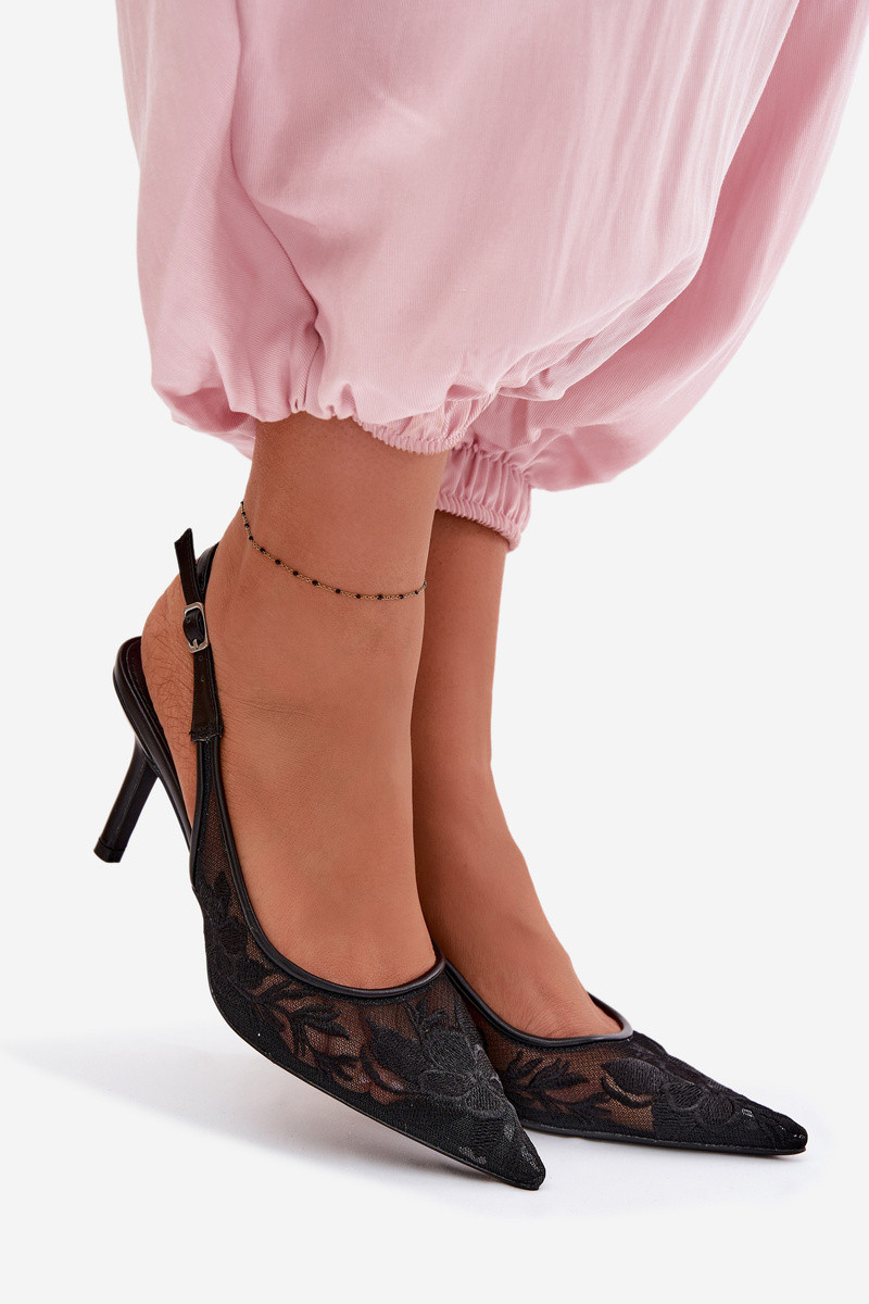 avec des motifs de dentelle grille des sandales avec des talons fins couleur noire Il fautvia