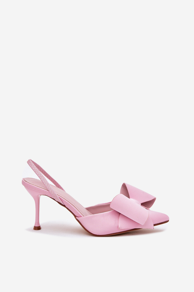 Chaussures à talons hauts roses avec talon ouvert et nœud Eklevia